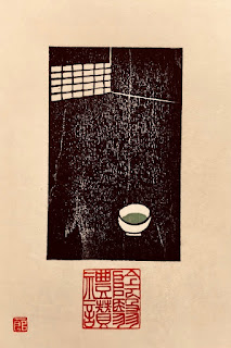 作者不詳,盲目の琵琶法師によって語られていたらしい。したがって,この冒頭には琵琶の音が付き物だ。べ〜ん,べ〜ん,べん,,,。『平家物語』を木版画にしてみた。琵琶と水面に映る月。篆刻は「祇園精舎」。「諸行無常」,「盛者必衰」など魅力的な言葉は他にもあるが,やはり一等最初の祇園精舎は外せない。